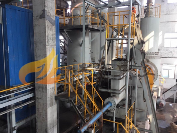 危废处理系统由上料装置、进料装置、回转窑本体、二次燃烧室、导热油炉、急冷塔、布袋除尘器、活性炭及消石灰喷粉装置、引风机、